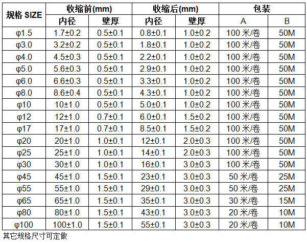 收缩温度:90℃~150℃