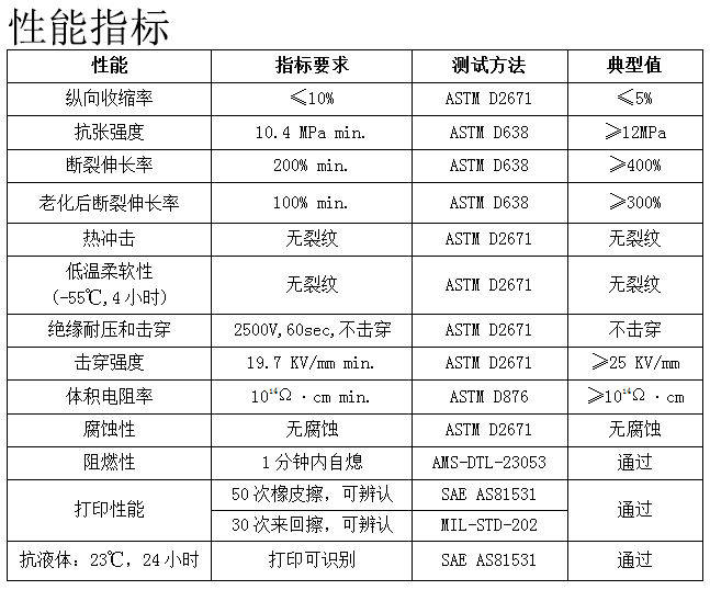 由优质辐照交联耐温125℃柔软高阻燃聚烯烃材质制成,具有优异的电气性能、物理性能、化学性能和打印性能,